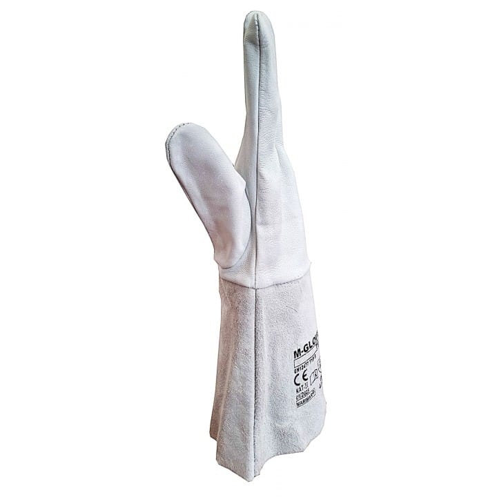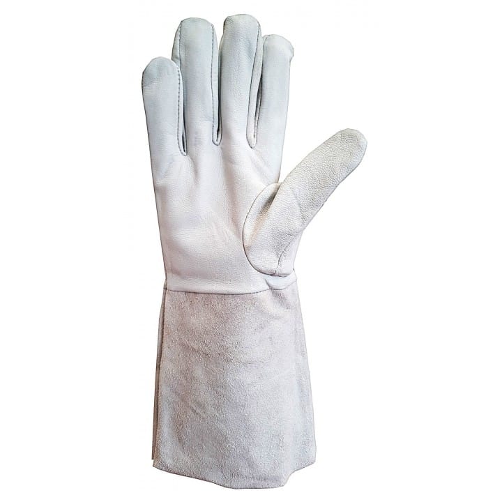 Rękawice ochronne spawalnicze wykonane ze skóry koziej z mankietem z dwoiny bydlęcej. Rękawice przeszyte są bardzo odpornymi na wysokie temperatury nićmi KEVLAR. Rękawice są całoskórzane – wykonane ze skóry, włącznie z mankietem sięgającym do połowy przedramienia, chroniąc w ten sposób przed przemiękaniem oraz zabezpieczając nadgarstek przed urazami. Długość rękawicy 35 cm.